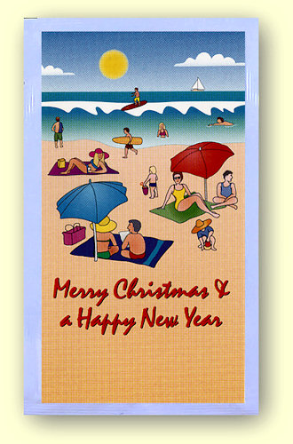 Tired of sending the same old Christmas cards each year? We know the feeling so forget the snow & reindeer! Christmas in Australia is the beach, the BBQ and the cricket! So why not send a Christmas card that's uniquely Australian and include a sunscreen sachet?